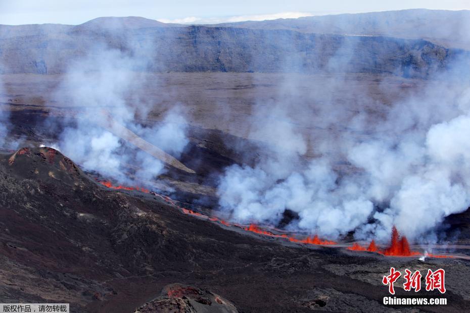 法国留尼旺岛火山喷发 熔岩迸溅场面震撼(组图)