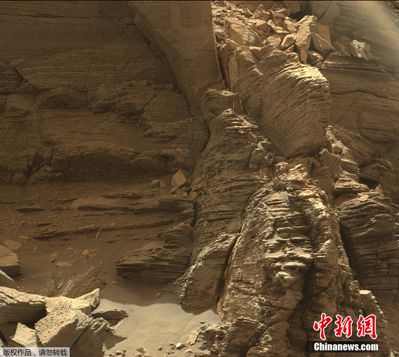 NASA形容,“好奇号”仿佛进行了一趟“横越美国沙漠的公路之旅”。影像中,火星上有着与地球景观相似的崎岖山壁。