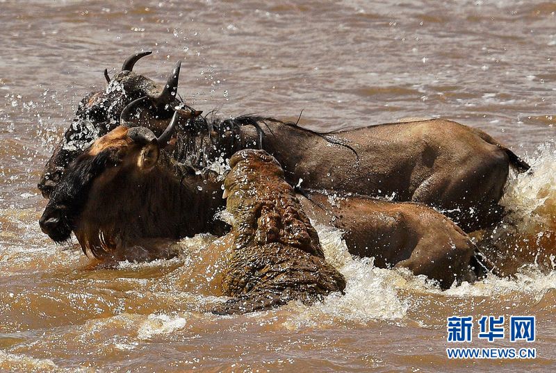 肯尼亚角马大迁徙 惨遭鳄鱼狩猎(图)