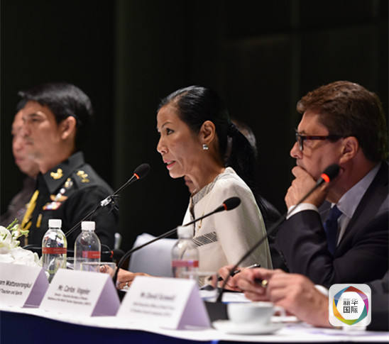 2015年8月26日,在泰国曼谷,泰国旅游和体育部长科甘(中)在一场关于曼谷爆炸后泰国旅游业的新闻发布会上发言。(新华社记者李芒茫摄)