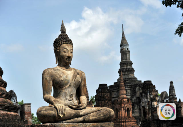 这是泰国素可泰古城“素可泰历史公园”里玛哈泰寺的一尊佛像(2013年5月21日摄)。(新华社记者高健钧摄)