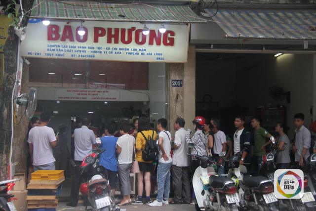 越南首都河内老字号“宝芳”月饼店前,客人排起长队。新华社记者乐艳娜摄