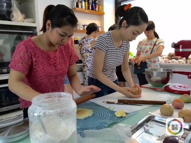 越南姑娘在学习制作月饼。新华社记者闫建华摄