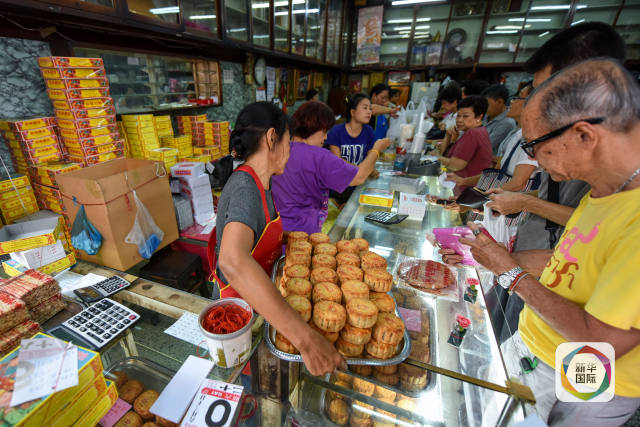 9月14日,市民在泰国曼谷唐人街一间糕饼店选购月饼。 新华社记者李芒茫摄