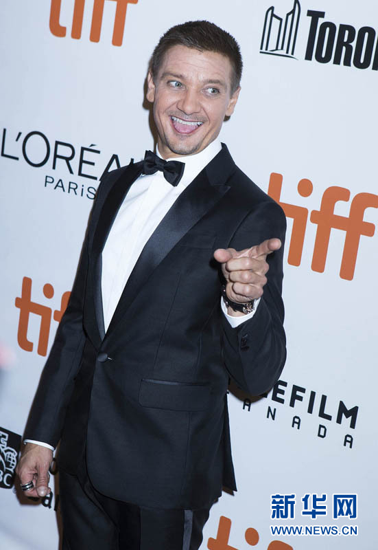 9月11日,美国演员杰瑞米·雷纳随影片《降临》亮相多伦多国际电影节。新华网发(邹峥摄)