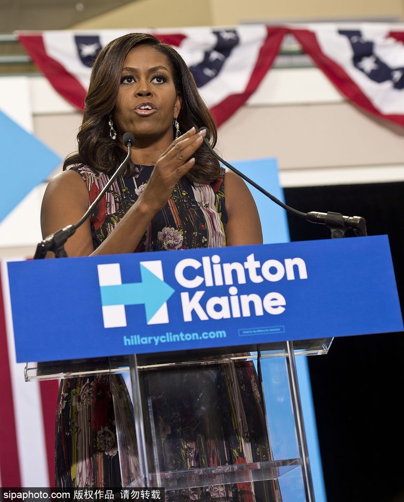 当地时间2016年9月16日,美国费尔法克斯,希拉里竞选活动第一夫人米歇尔·奥巴马(Michelle Obama )助阵拉票演讲。(图片来源:希帕中国)