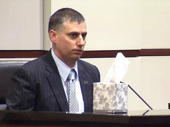 资料:8月4日,朴次茅斯,警员斯蒂芬·兰金坐在法庭内。