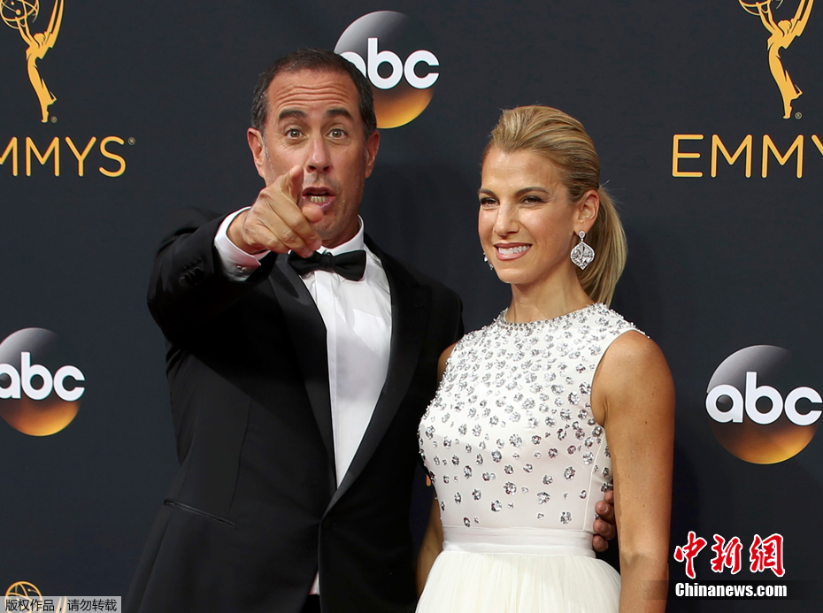 著名脱口秀主持人杰瑞·宋飞携妻子亮相红毯。