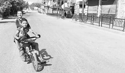 9月15日,在叙利亚阿勒颇老城,两名男孩在玩耍。新华社记者 杨 臻摄