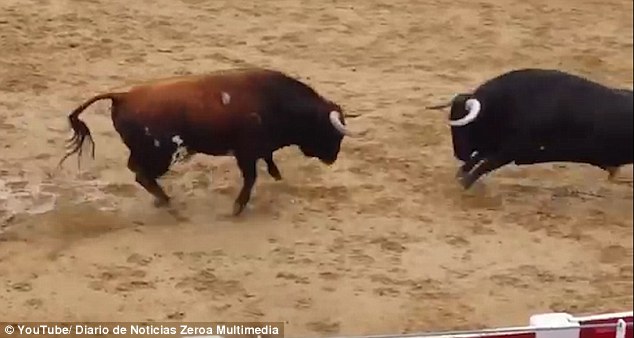 致命冲撞!西班牙两斗牛头部高速对撞 瞬间死去(组图)