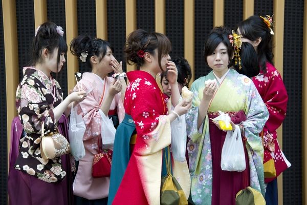 资料图:2012年3月15日,日本东京,女大学毕业生身着传统服饰参加毕业典礼。(新华/欧新)