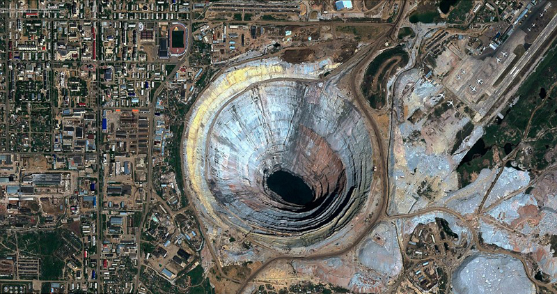 墨西哥城令人称奇的规整放射状街区广场、日尼尔色彩缤纷的阿尔利特铀矿、沙特阿拉伯神奇的中心旋转灌溉系统。这些令人印象深刻的航拍照片全部收录在本杰明 格兰特的新书《全球概览:全新视角》(Overview: A New Perspective)中。本杰明表示,很少人有机会能够以上帝视角观赏地球风光。所以他想为人们提供一个新的、更宽广的视角,让人们感受世界的美妙。图为俄罗斯极度壮观的 “和平”钻石矿。