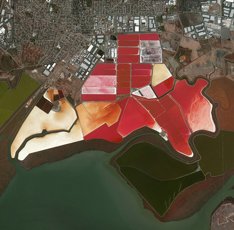 据英国《每日邮报》9月19日报道,近日,一组世界航拍图强力吸引了人们的目光,上帝视角的世界令人痴迷。 图为美国旧金山色彩艳丽的盐田。