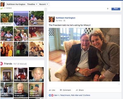 据考证,消息来自罗伯特·肯尼迪的女儿肯尼迪·汤森。报道说,老布什在一次大约40人的小范围聚会上对罗伯特·肯尼迪的女儿肯尼迪·汤森说这番话。随后汤森把她与老布什在一起的照片发到社交网络,并写道:“总统告诉我,他要投票给希拉里。”罗伯特·肯尼迪是美国前总统约翰·肯尼迪的弟弟,民主党人。