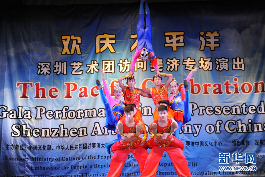 9月22日,深圳艺术团在斐济首都苏瓦的专场文艺演出上表演杂技《阵型力量》。为庆祝中国国庆节,深圳艺术团当晚在斐济首都苏瓦奉上名为《欢乐太平洋》的专场文艺演出。本次活动由中国文化部和中国驻斐济大使馆主办,由深圳市文体旅游局和斐济中国文化中心承办。 新华网记者刘鹏摄