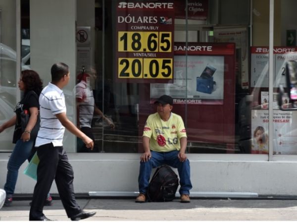 9月22日,墨西哥城,银行门前汇率显示牌。(新华/法新)