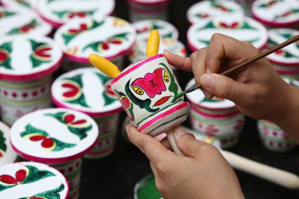 资料图:山东郯城木旋玩具是一种古老的传统手工艺品,图案一般取材于中国民间神话和民间故事。 新华社发
