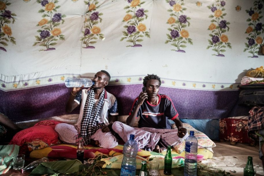 摄影师的向导易卜拉欣在村里的一家咖啡馆。