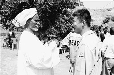 苏丹当地农户与新纪元公司种植加工基地员工热情交谈。记者 李逸达摄