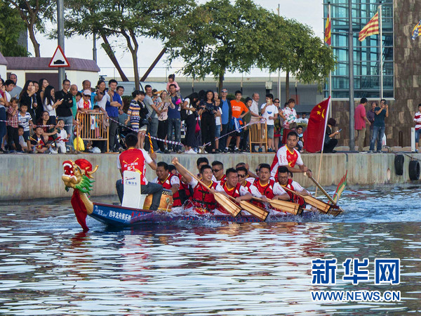 新华网巴塞罗那9月26日电(记者 周喆)西班牙第一届龙舟文化节24日在巴塞罗那附近小城巴达洛纳(Badalona)举行,数百名中外龙舟爱好者到场观看精彩的龙舟表演,并体验在海面上划龙舟的乐趣。