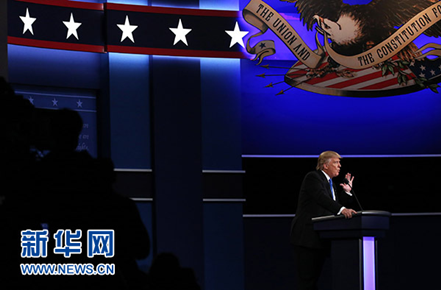 9月26日,在美国纽约州亨普斯特德的霍夫斯特拉大学,唐纳德·特朗普参加2016年美国总统候选人首场电视辩论。新华社记者秦朗摄
