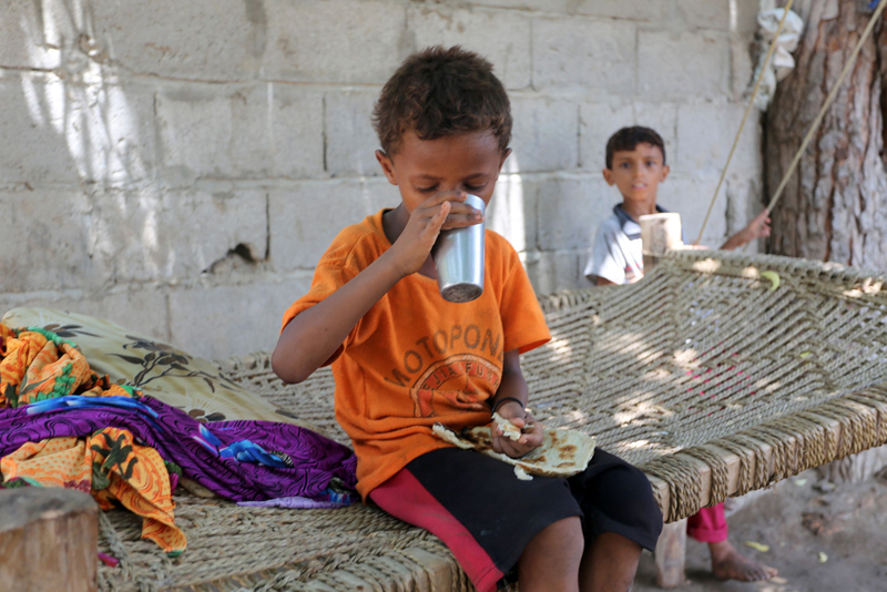 当地时间2016年9月26日,在也门反对派控制的港口城市荷台达郊区的一个贫困村庄,营养不良的儿童。在沙特联合军空袭之前,也门就一直是最贫穷的阿拉伯国家。2016年8月,联合国人权办公室表示也门有760万人营养不良,至少有300万人逃离家园。