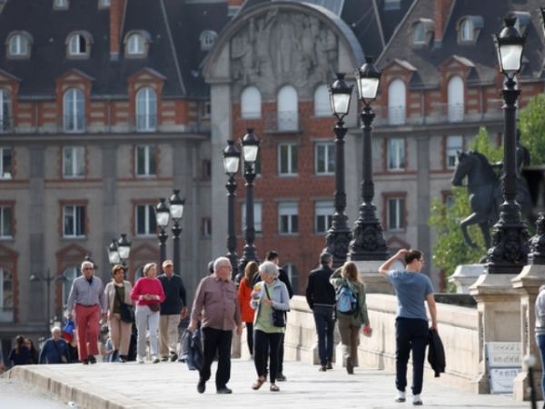 9月26日,人们在塞纳河一座石桥上行走。(新华/路透)