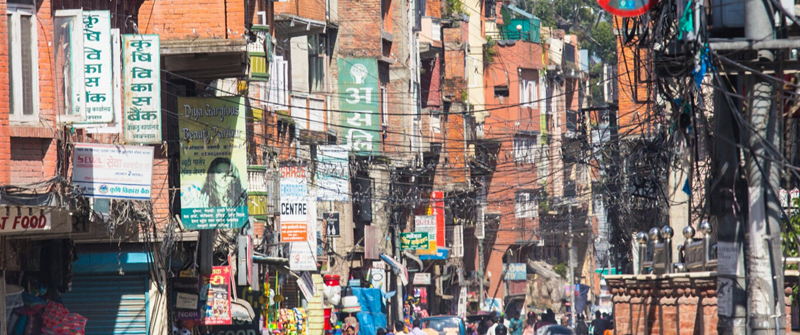图为尼泊尔繁忙的街道。