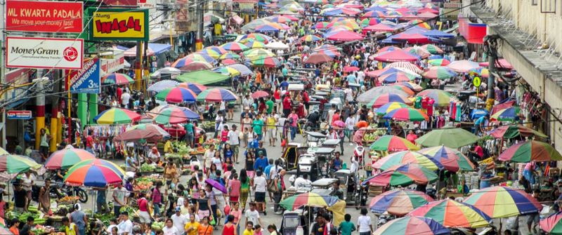 图为菲律宾马尼拉拥挤的集市。