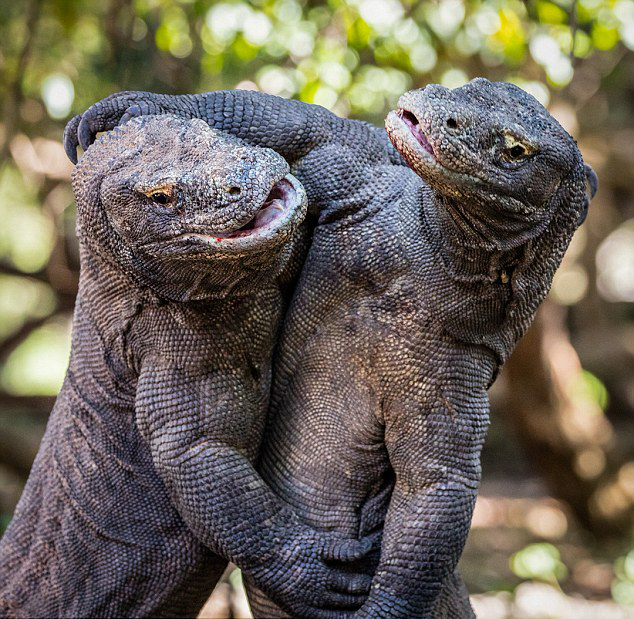 据悉,科摩多巨蜥是世界上现存最大的蜥蜴,无天敌,大多栖息在爪哇(Java)岛周围的丛林中,主要以腐肉为食。科莫多巨蜥十分丑陋肮脏,而且唾液里有许多细菌,下颚发达的腺体能够分泌致命毒液。