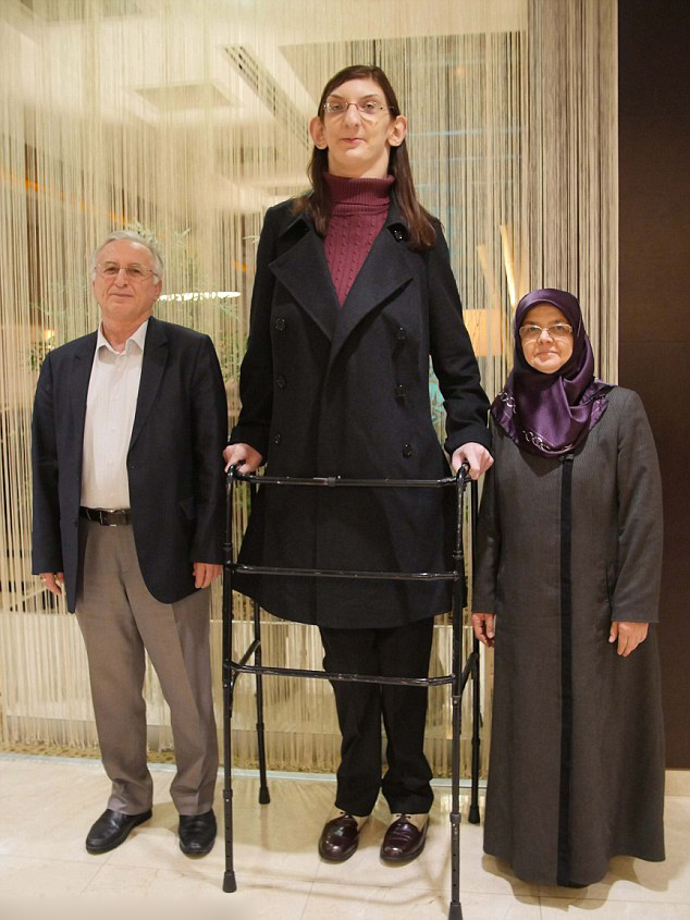 据英国《每日邮报》近日报道,土耳其19岁的女孩鲁梅伊莎 盖尔吉(Rumeysa Gelgi)目前是世界上最高的女性青少年,其身高达7英尺(约2.13米)。因患有韦弗综合症,鲁梅伊莎骨头猛长,导致身高太高,而无法正常行走。