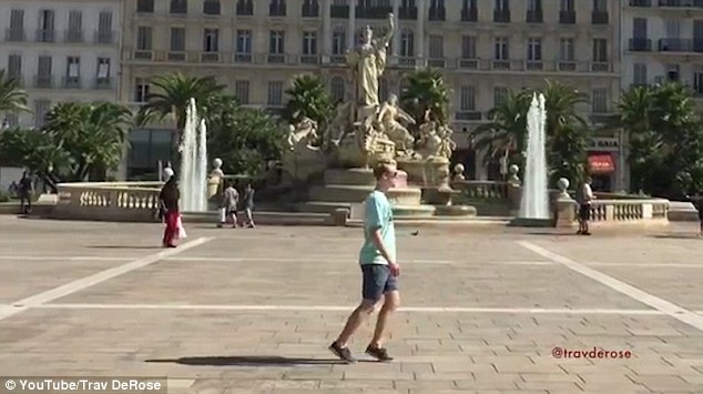 城会玩!美小伙欧洲景点前自拍走太空步爆红(组图)