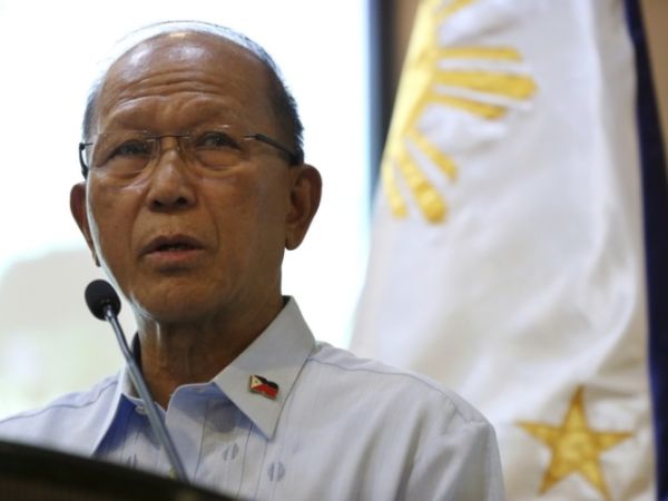10月7日,菲律宾国防部长德尔芬·洛伦扎纳在马尼拉举行的新闻发布会上发言。(新华/美联)