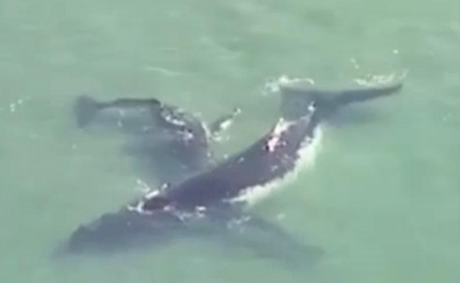 暖心!母鲸搁浅 鲸宝宝勇敢将妈妈推回大海(图)