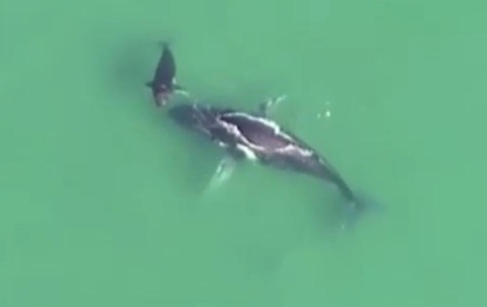 暖心!母鲸搁浅 鲸宝宝勇敢将妈妈推回大海(图)