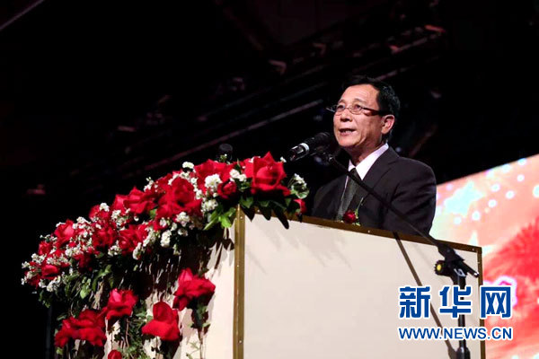10月2日,中国驻圣保罗代总领事成宝祥在国庆晚会上致辞。 新华网发