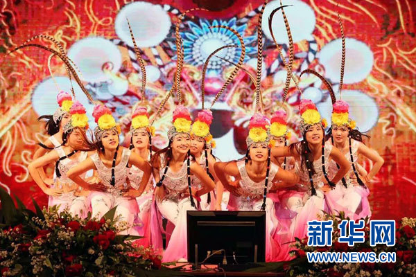 10月2日,艺术家们在国庆晚会上演出。 新华网发