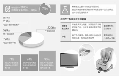 比对中外3816项消费品安全技术指标,有3000项与国际国外要求一致