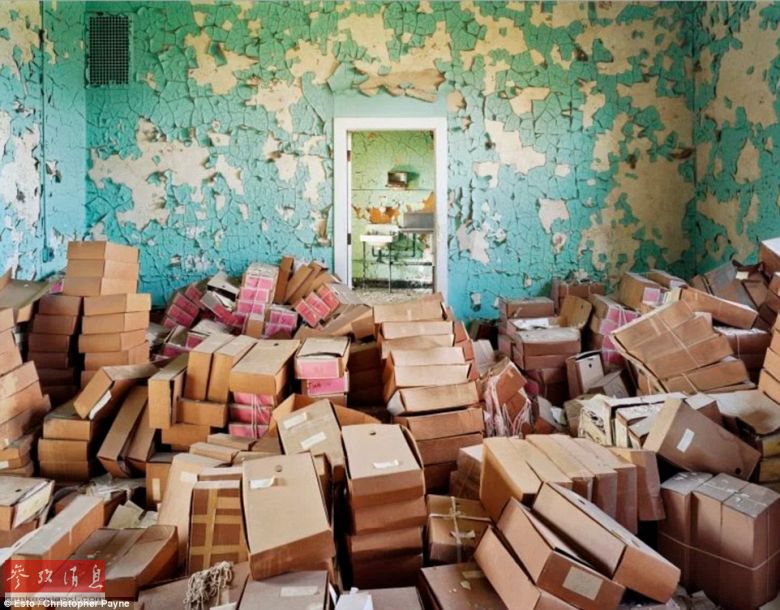 马里兰州卡顿斯维尔,春林州立医院,斑驳的墙壁与废弃的纸盒显得有些落寞。