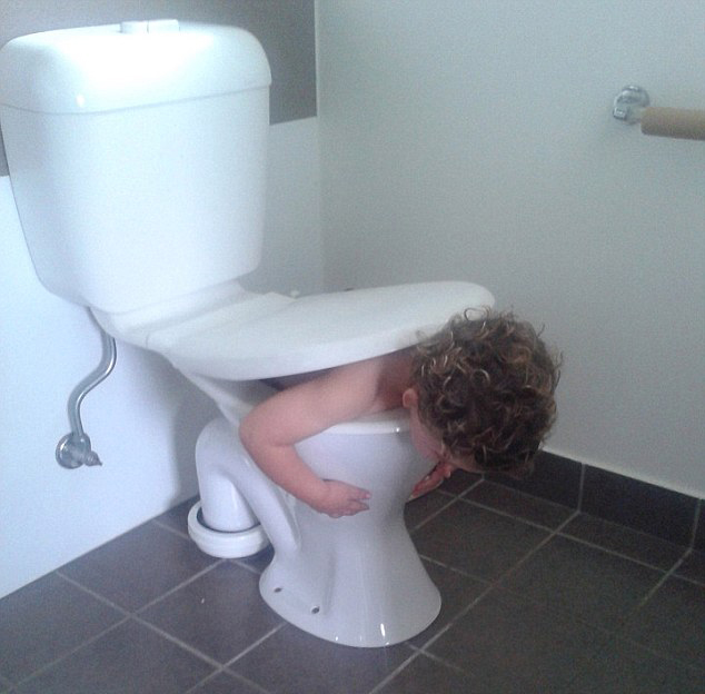 没有人能猜到为什么一个咿呀的孩童要爬到马桶里,但当马桶盖扣下来将他困在马桶中或许让他不太高兴。
