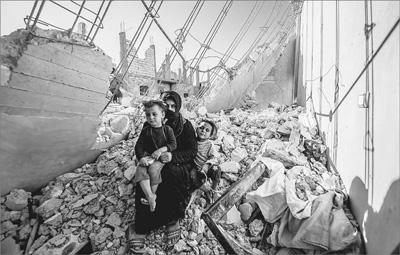当前,叙利亚的冲突焦点主要集中在叙利亚城市阿勒颇。图为10月1日,当地民众坐在阿勒颇的建筑废墟上。 人民视觉