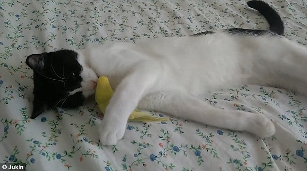 通过主人上传的视频可以看到,当喵星人和它的朋友玩累的时候,它们会一起躺在床上休息,并且这个友爱的喵星人还会把它的搂在怀里。