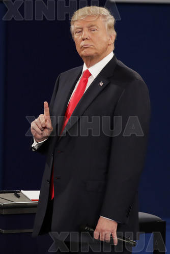 10月9日,在美国密苏里州圣路易斯市的华盛顿大学,美国共和党总统候选人唐纳德·特朗普参加2016年美国总统候选人第二场电视辩论。(新华社/美联)