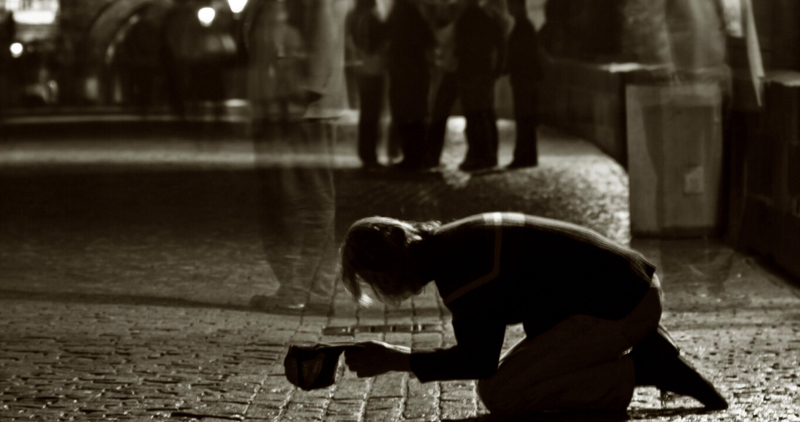 联合国一份报告显示,全世界大约有1亿无家可归的人,他们每天都要在绝望中求生。为了纪念10月10日的世界流浪者日(World Homeless Day),英国照片社区photocrowd组织了一场摄影比赛,要求参赛者们用镜头记录无家可归的人们。图为捷克一名男子跪在街头乞讨。