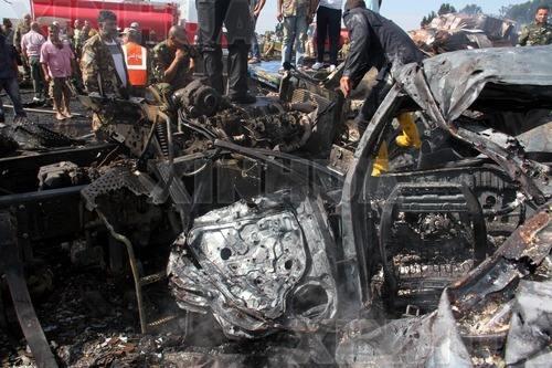 这张叙通社9月5日提供的照片显示,人们在叙利亚西部沿海城市塔尔图斯查看爆炸袭击现场。叙利亚多个城市当地时间5日早晨发生爆炸袭击,造成48人死亡,数十人受伤。极端组织“伊斯兰国”宣称当天在叙利亚多个城市制造了爆炸袭击。(新华社发)
