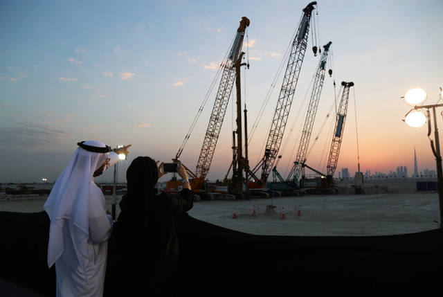在迪拜天际线映衬下的项目工地。(新华社记者李震摄)