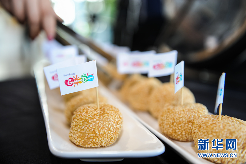 10月10日,在美国硅谷,可供品尝的广式点心。当日,广东省旅游局举办“走进硅谷——广东美食周”主题活动,向精英人群推广中国旅游。新华网记者张超群摄