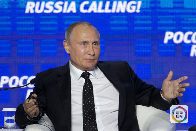 10月12日,在俄罗斯莫斯科,俄罗斯总统普京在“俄罗斯在召唤”年度国际投资论坛上发表讲话。 (新华社/美联)