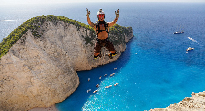 布莱恩 莫斯博是一名冒险家和摄影师,来自得克萨斯州,今年31岁。莫斯博一到沉船湾就被这里的美景深深吸引。他乘车来到一座650英尺高(约198米)的悬崖顶部,准备尝试跳伞。从悬崖边缘俯冲下去后,他必须在2至5秒的时间内打开降落伞,否则就会摔得粉身碎骨。如此惊险刺激的体验,足以令人肾上腺素飙升。