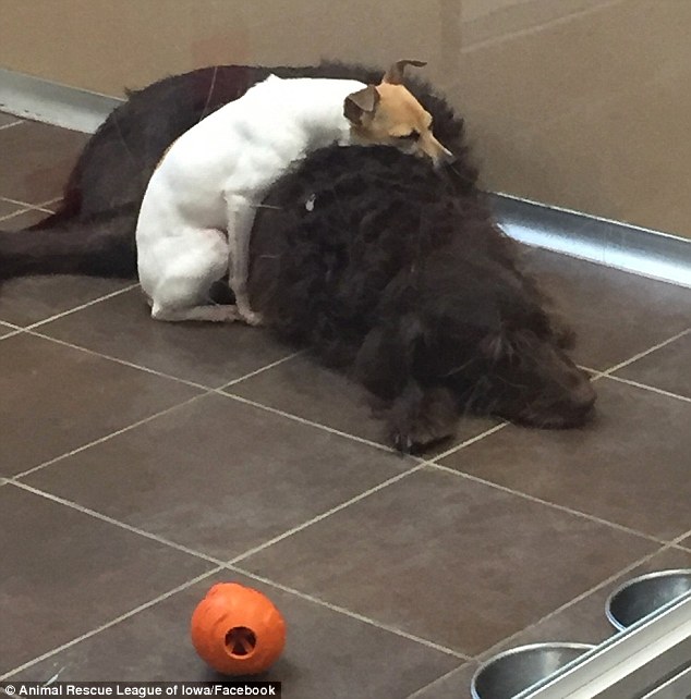 报道称,前主人因为孩子对狗过敏,只得将CC和Chewbacca送到动物救援联盟。那里的工作人员很快便爱上了这两只不能彼此分开的狗狗。“几乎每次我们去它们的狗窝查看,CC或坐,或躺或蜷缩在Chewbacca身上。”工作人员杰西卡 约根森说,“对Chewbacca来说,它根本不介意。它们都喜欢接近彼此。”